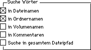 F]. Klicken Sie auf die Lupe im Suche Wörter Fenster um zum Einstellungsfeld Suche zu gelangen. Benutzen Sie die Einstellungsmöglichkeiten um festzulegen, wie Ihre Suche durchgeführt werden soll.