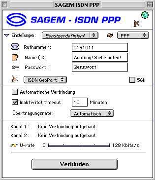Einstellungen um sich bei T-Online mit dem SAGEM Planet-ISDN Geoport Adapter einzuwählen