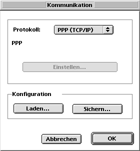 Hier müssen Sie lediglich aus dem Popupmenu das PPP-Protokoll auswählen.