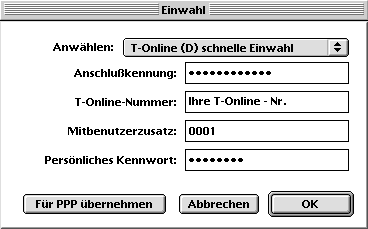 Zusätzlich sind in der T-Online-Software folgende Einstellungen notwendig: