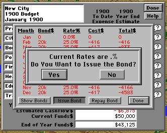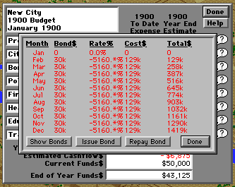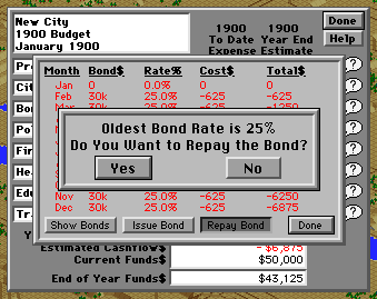 | Wählen Sie im Budget unter Bonds Repay Bond aus. | |